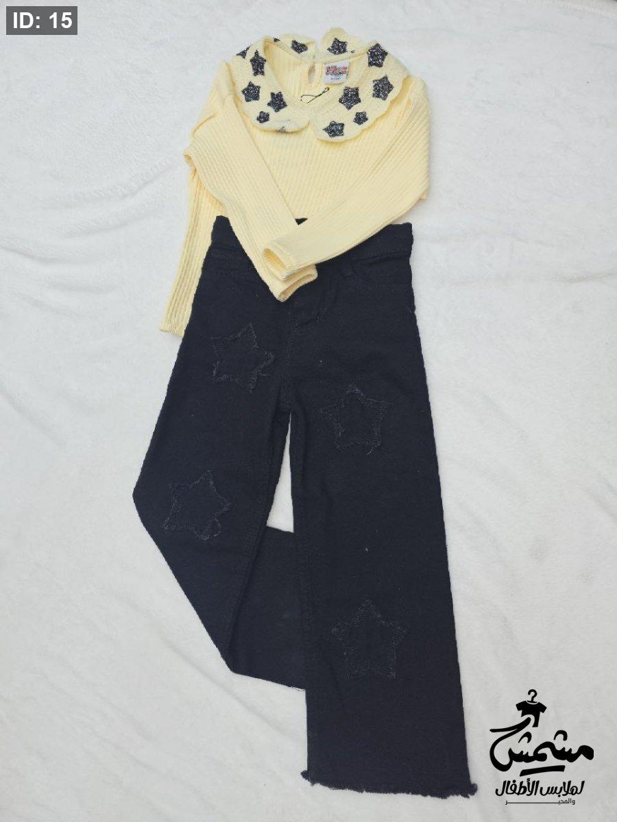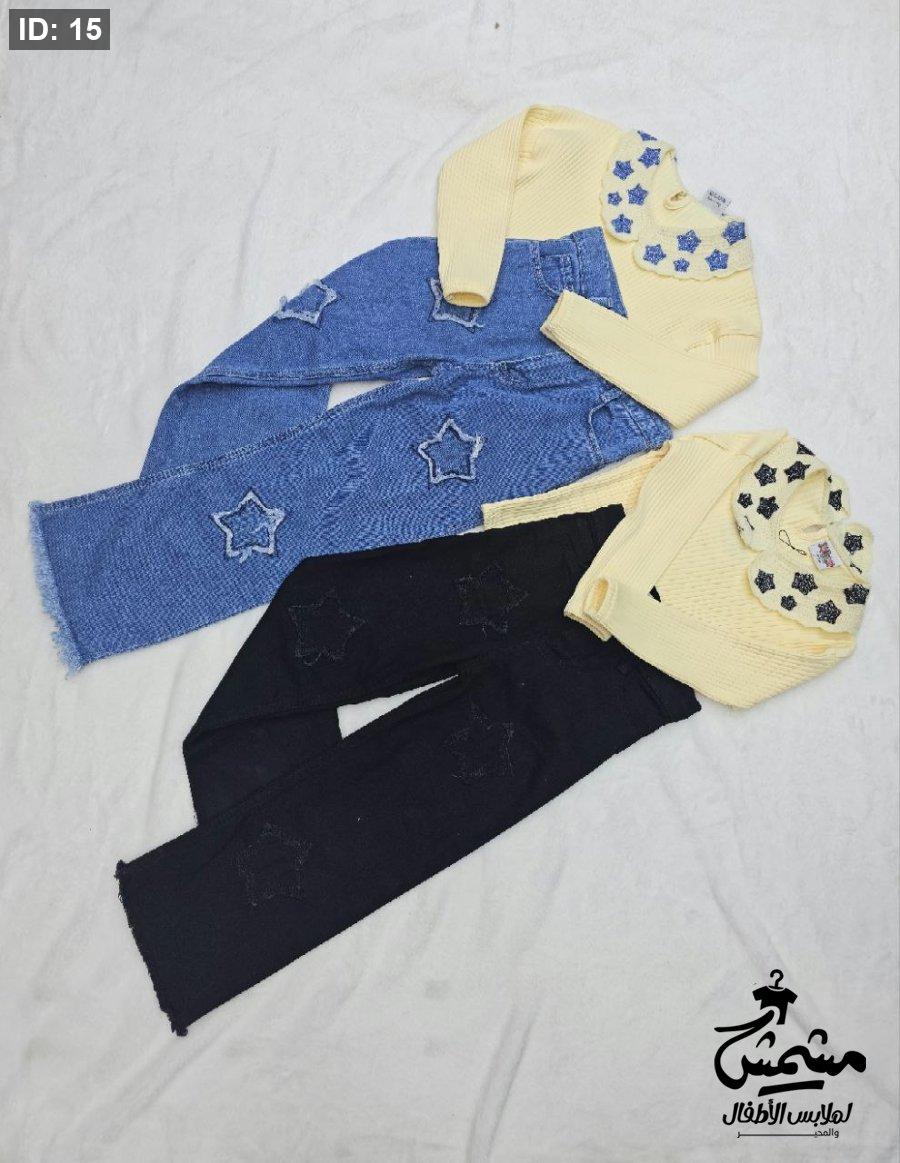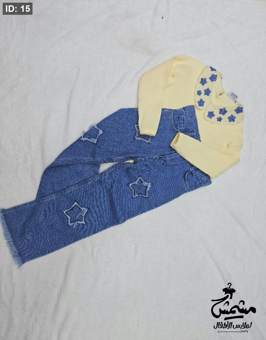 طقم بناتي خريفي نجوم + بنطلون جينز
